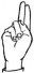На ћирилици написано КОСТАДИН ВИДОСАВЉЕВИЋ састоји се из 20 слова [?]. Исписано ћириличном једноручном азбуком за глувонеме: